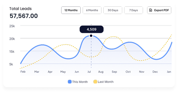Leads, conversions, attendance, progress.